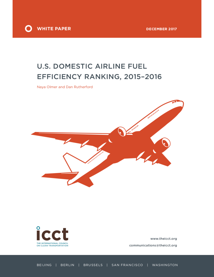 Following in the footsteps of the 2010–2014 airline rankings, this study ranks U.S. domestic air carriers by their overall fuel efficiency for the years 2015 and 2016. The analysis continues the use of the frontier model, which fairly compares different air carriers regardless of business model using air carrier reported BTS data.